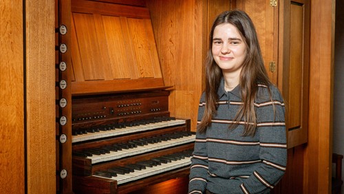Caroline Ladewig Kristensen er for tiden organistvikar i Lindevang Kirke ved siden af sine studier på konservatoriet.